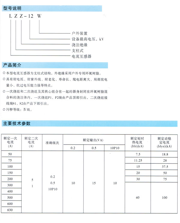 LZZ-12W型电流互感器