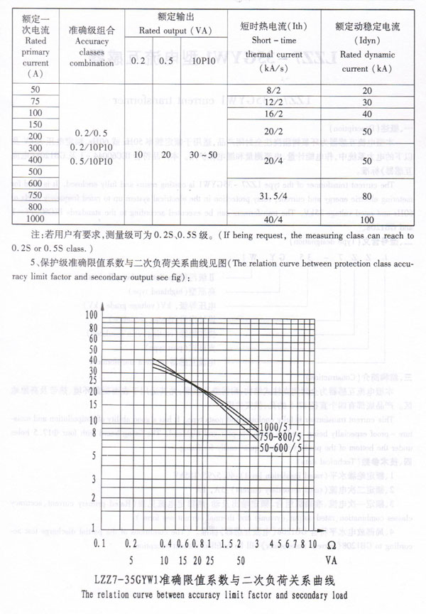 3、Rated primary current.accuracy classes combination.rated output.dynamic and thermal current see form