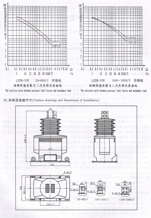 The type of current transformer is afull en - closed and prop shape product. It is made by outdoor resin (made in Switzerland ciba, the type is CW5837). The product has much merit, such as:electric are resistances, ultraviolet ray and aging resistance long working time, long creepage distance, little partial discharge and large caliber of resistance to over - voltage, etc. The primary winding, secondary uinding and core are made up together and poured in the cast. The primary winding's terminal Pl and P2, is on the product, and the secondary winding's terminal, Sl and S2, is leaded out from the hermetic leading out box under the product