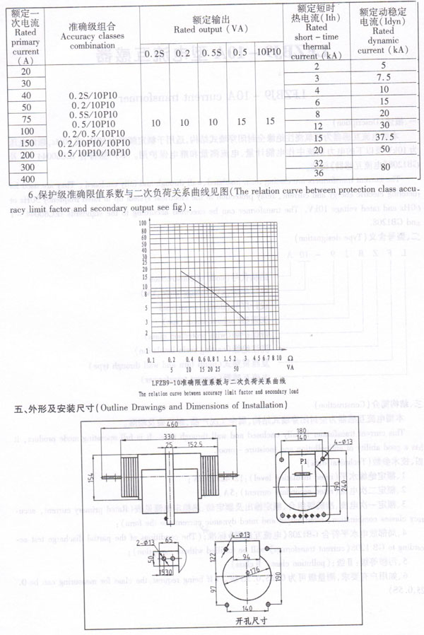 3、Rated primary current. accuracy class,rated output and rated short - time current, see form