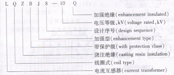 The current transformers of the type LQZBJ - 10Q and LQZBJ8 - 10 are casting resin, full enclose and post type producc. It is used for metering electric energy and current, relay protection in the electne system of rated frequency 50Hz or 60 Hz and rated voltage lOkV. The design is suitable for working condition of small and short Lime current. The transformers can be executed according to the standards IEC60044 -1 and CB1208.二、Type designation