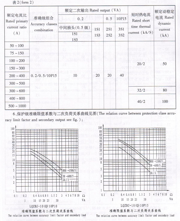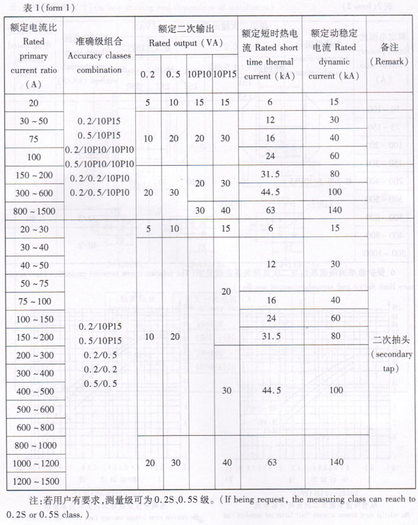 3、Rated primary current, accuracy classes combination. rated output and rated dynamic current see the form: