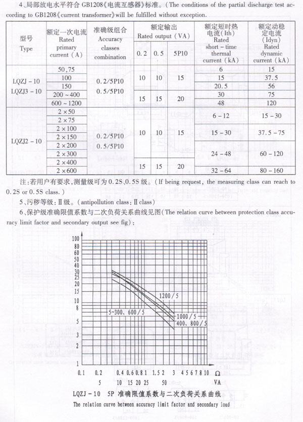 3、Rated primary current, accuracy classes combination, rated output, rated dynamic and thermal current see fonn