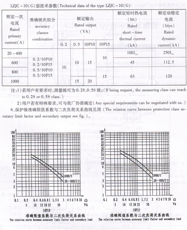 3、Rated primary current, accuracy classes combination, rated dynamic and thermal current see the form