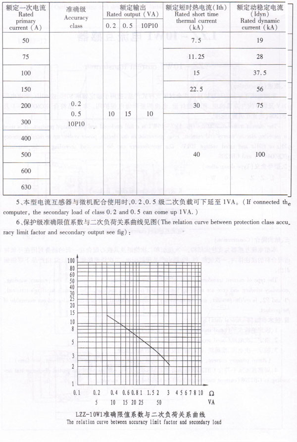3、Rated primary current, accuracy class, rated output and rated short - time current, see form