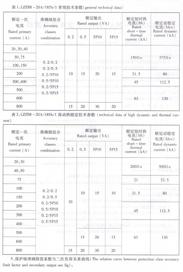 3、rated primary current, accuracy classes combination, rated output, dynamic and thermal current see form l and 2.
