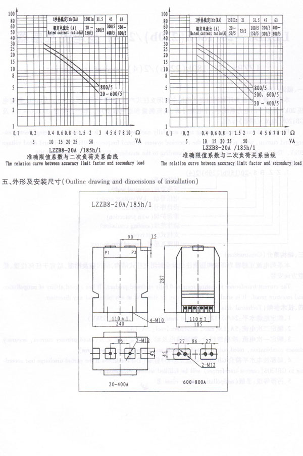 This type of current transformer is fully enclosed and post type. It is smaU and light. There are four fixing hole of Mlo on the bottom四、Technical data