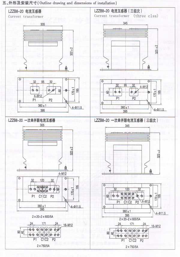 The current transformer of the type LZZB8.- 20 is casting resin, full enclosed and post type product. Itis used for metering electric energy and current, relay protection in the electrical system of rated frequency 50Hz or 60Hz and rated voltage 20kV. The transformers can be executed according to the standards IEC60044 -l and GB1208.二、Type description
