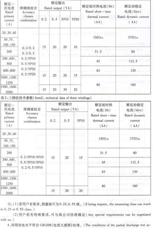 3、Rated primary current,accuracy classes combination, rated output, rated dynamic and thermal current see form):