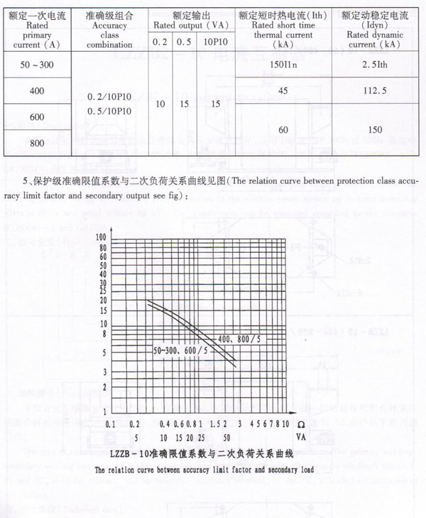 3、rated primary current,accuracy classes combination, rated output, rated dynamic and thermal current see form