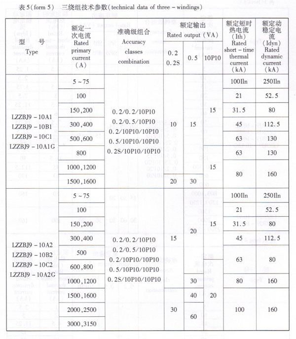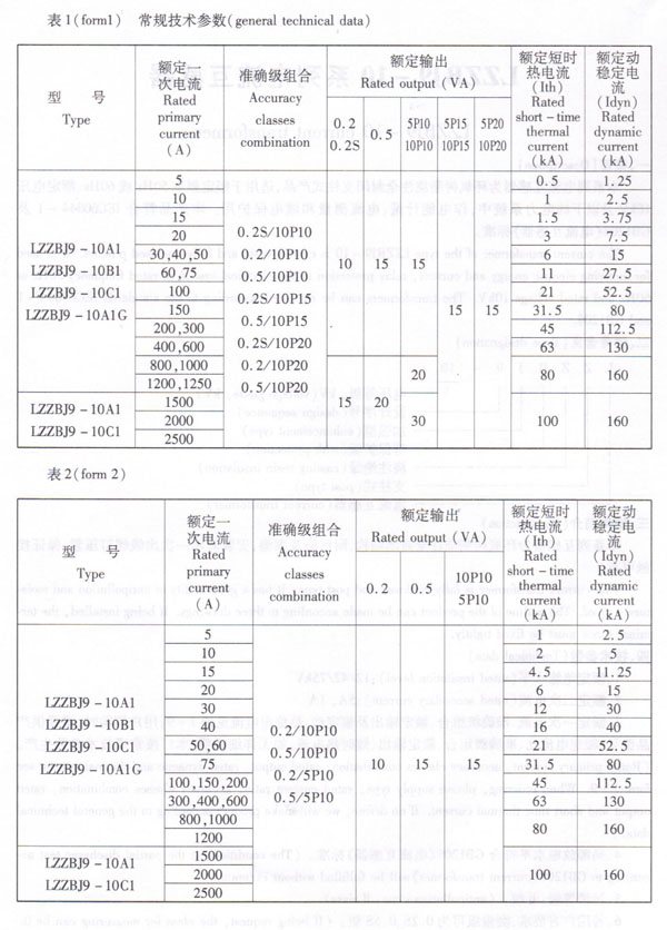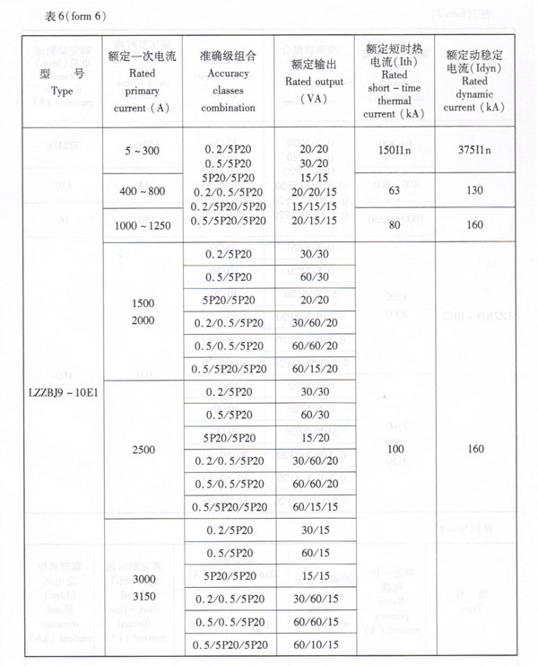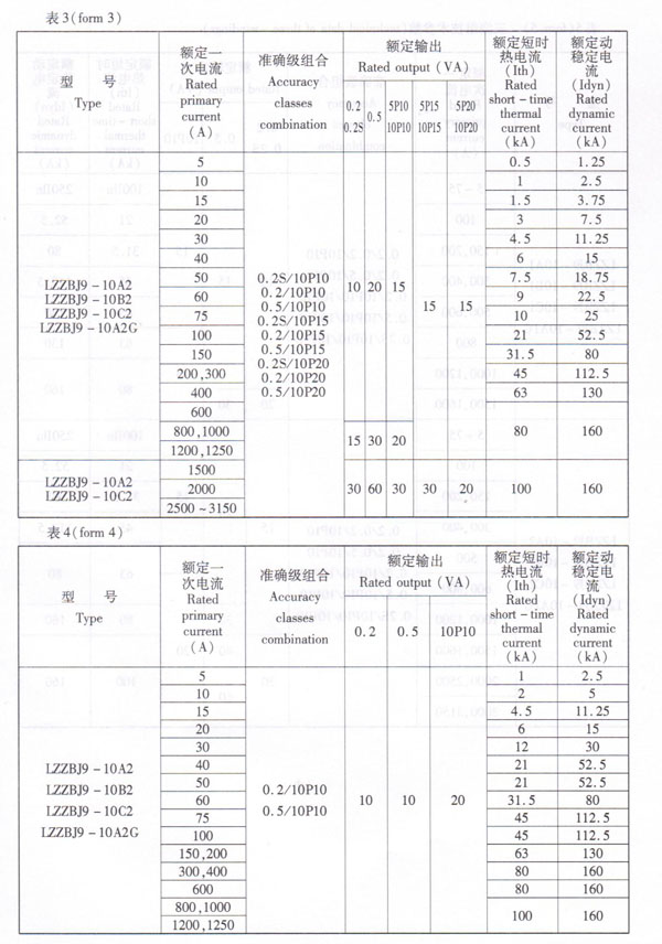 3、Rated primary current, accuracy classes combination, rated output, rated dynamic and thermal current see