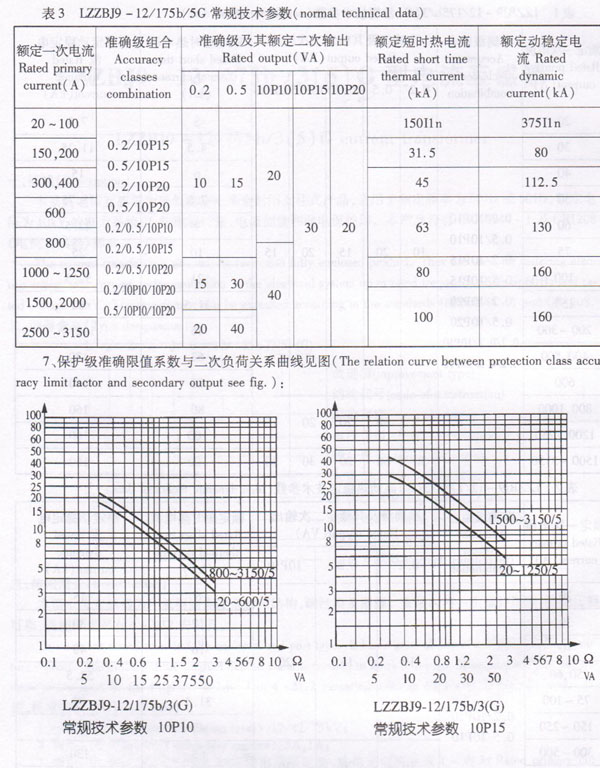 3、Rated primary current, accuracy classes combination.rated output and rated dynamic current see the forml~3