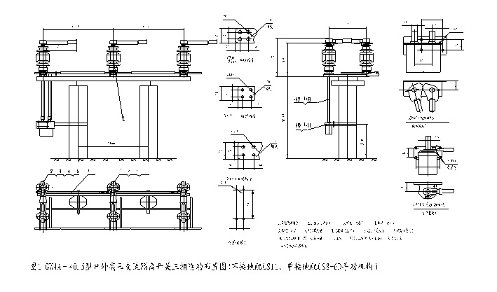 ◎ 成套隔离开关由GW4A-40.5(D) (W)型隔离开关本体、CS14G型人力操动机构、传动附件等组成,也可配用CJ6型等电动机构。
