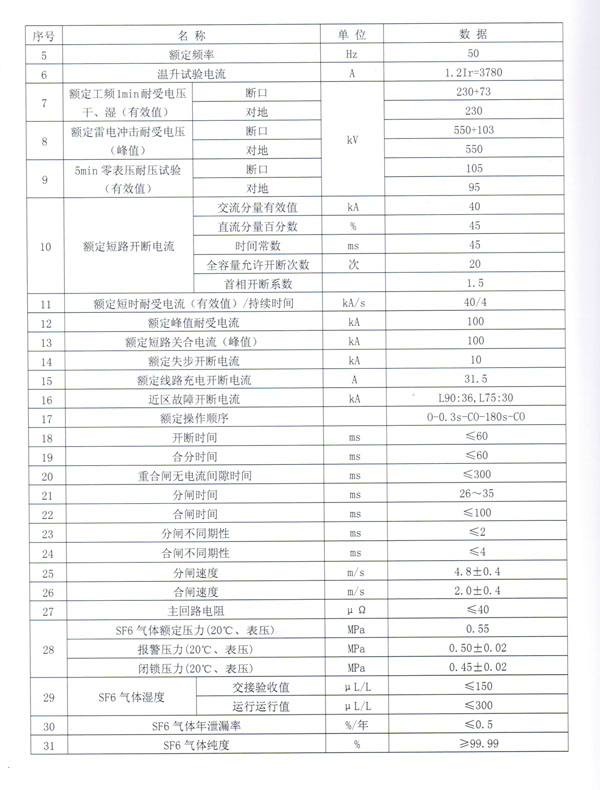 LW36-126/3150-40型高压SF6断路器